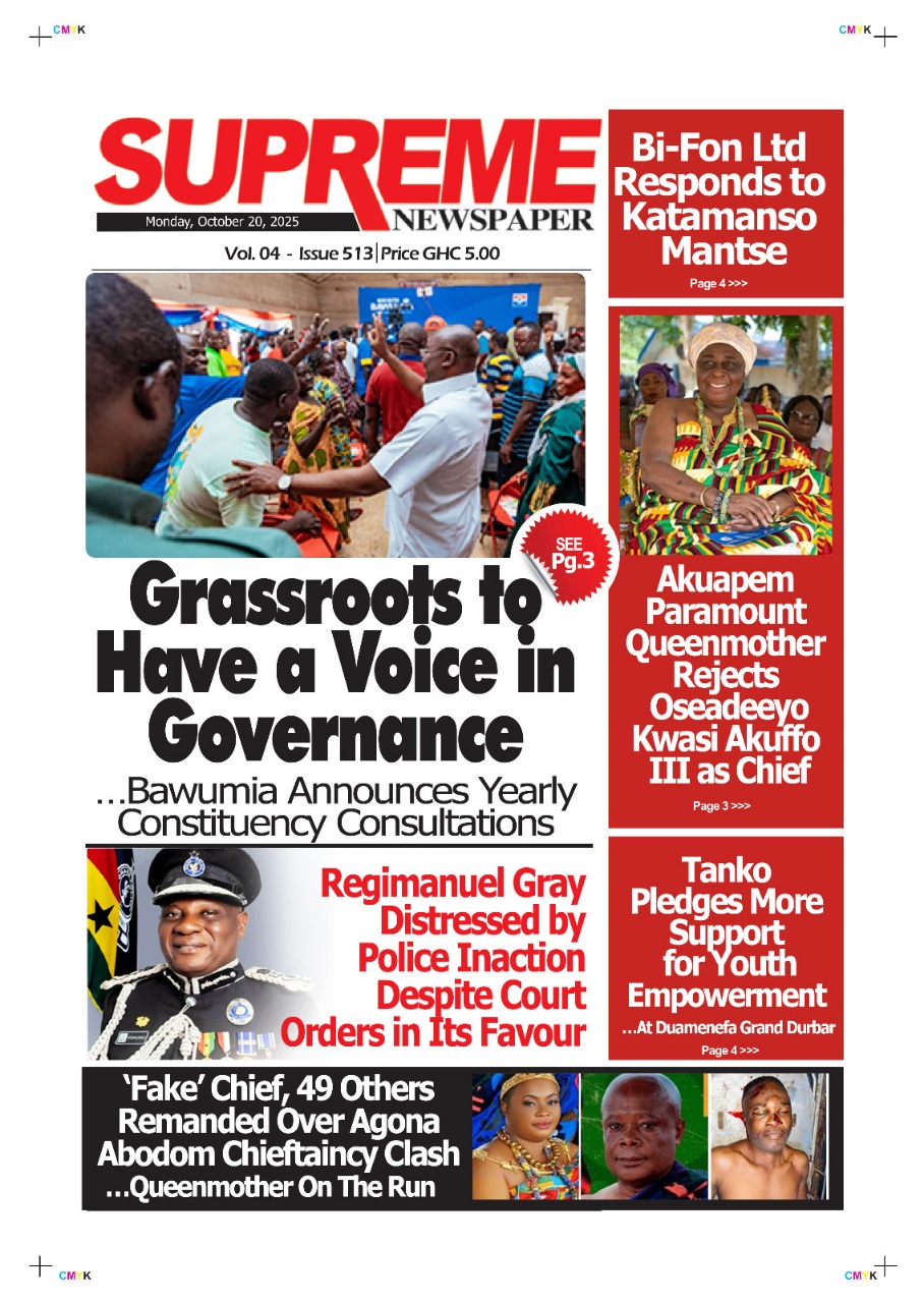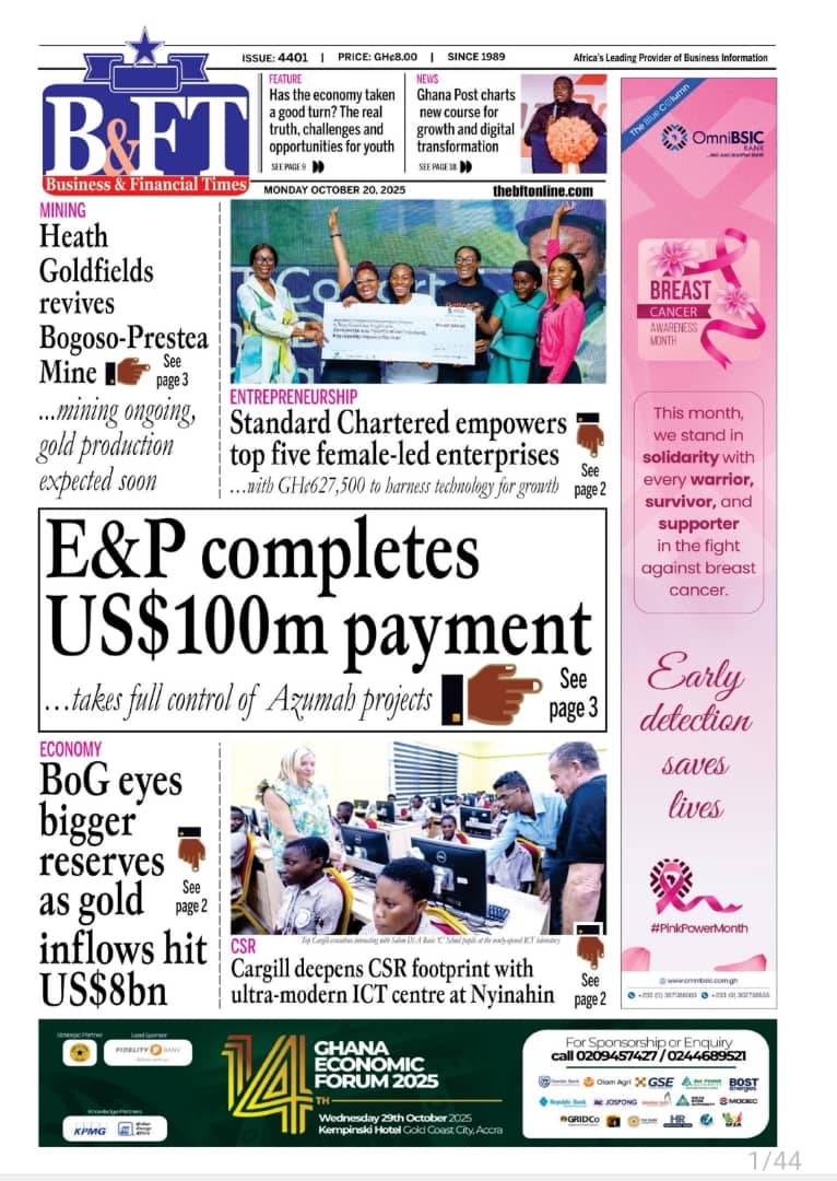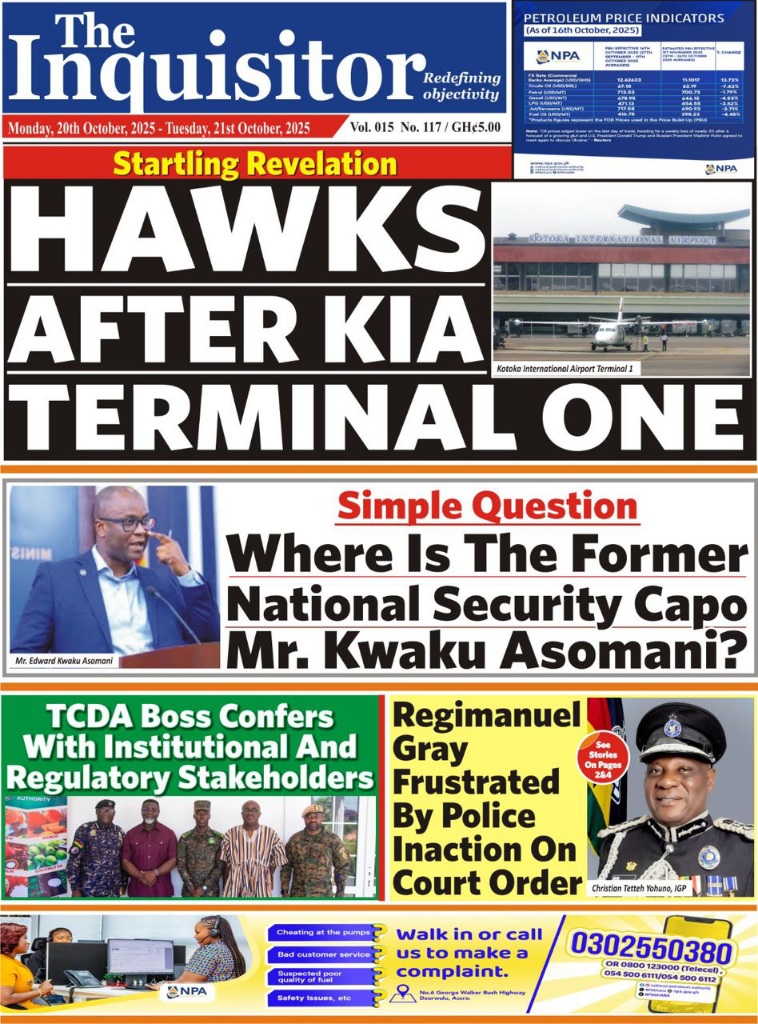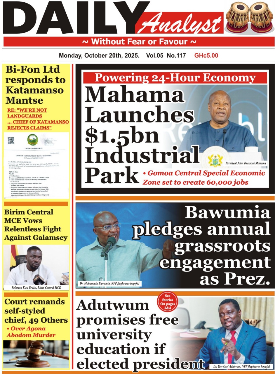 NEWS Monday October 20 2025 Newspaper Headlines By Tolon Radio October 20, 2025 Share Monday October 20 2025 Newspaper Headlines SHARE Monday October 20 2025 Newspaper Headlines You Might Also Like Sene East MP empowers local beauticians and fashion designers Former NEIP CEO Kofi Nkansah rebuts Health Minister’s claim on agenda 111 projects Gov’t extends free SHS to Private Schools — ₵994 annual support per student to benefit 25,000 learners Friday, October 17, 2025 Newspapers Front Pages Minority Caucus holds pre-opening workshop ahead of Parliament’s resumption Share This Article Facebook Twitter Email Print Follow USFind US on Social Medias FacebookLikeTwitterFollowInstagramFollowYoutubeSubscribe Popular News NEWS Dr. Amin Adam champions a quiet education transformation in the North Tolon Radio July 6, 2025 President Mahama inspects Ofankor-Nsawam road project Breaking News: NDC selects Bernard Ahiafor as Deputy Speaker of the 9th Parliament Equatoria Guinea Supreme Cout acquits Balthazar Engonga in high profile scandal Minority Leader debunked quotes in alleged leak Mike Oquaye’s report TRENDING Monday October 20 2025 Newspaper Headlines October 20, 2025 Sene East MP empowers local beauticians and fashion designers October 19, 2025 Samed Gunu champions Bawumia’s Presidential ambitions in Savelugu October 17, 2025 Former NEIP CEO Kofi Nkansah rebuts Health Minister’s claim on agenda 111 projects October 17, 2025 Gov’t extends free SHS to Private Schools — ₵994 annual support per student to benefit 25,000 learners October 17, 2025