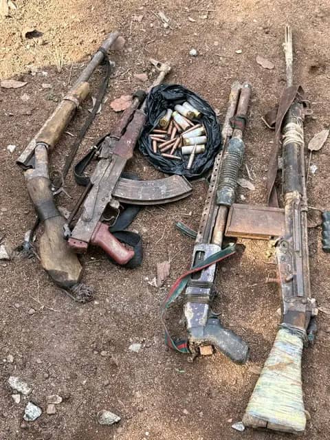 The suspects opened fire on the police, triggering a shootout that left three of them dead and two others escaping into the bush. The police retrieved two pump-action guns, one unbranded pistol, 25 live cartridges, and six spent cartridges from the scene. A follow-up operation on December 26, 2025, led to the recovery of more weapons, including an AK-47 assault rifle, an MG3 rifle, a pump-action gun, and a single-barrel gun.