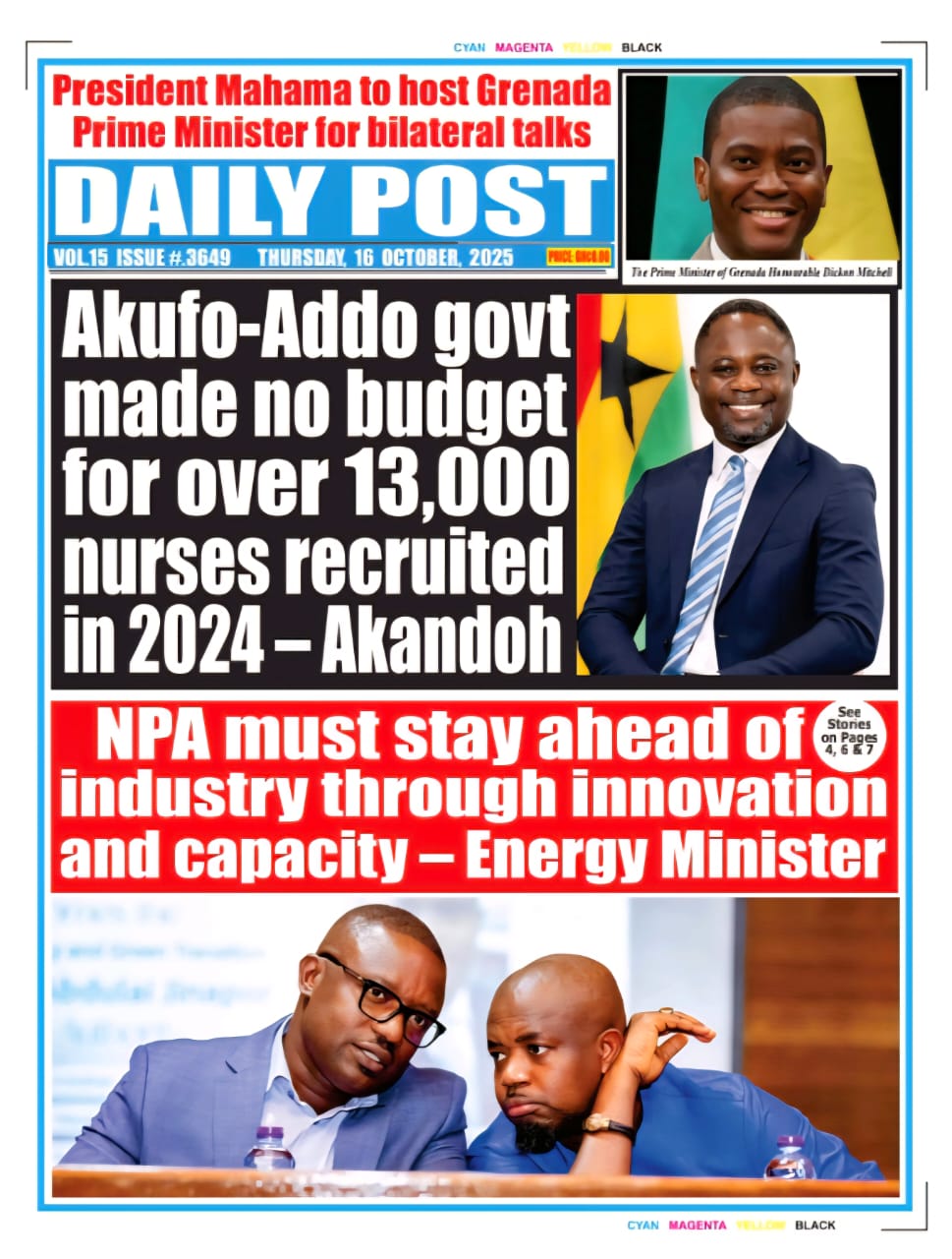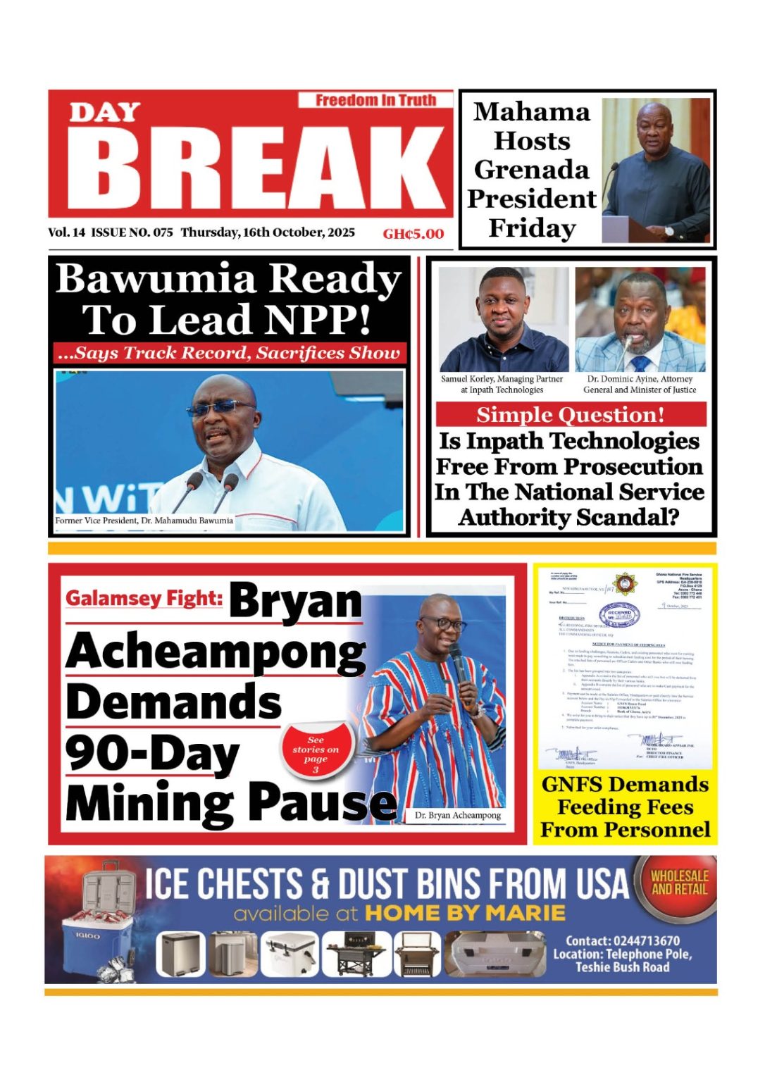 Tolon Radio > Blog > NEWS > Thursday, October 16, 2025 Newspaper Headlines