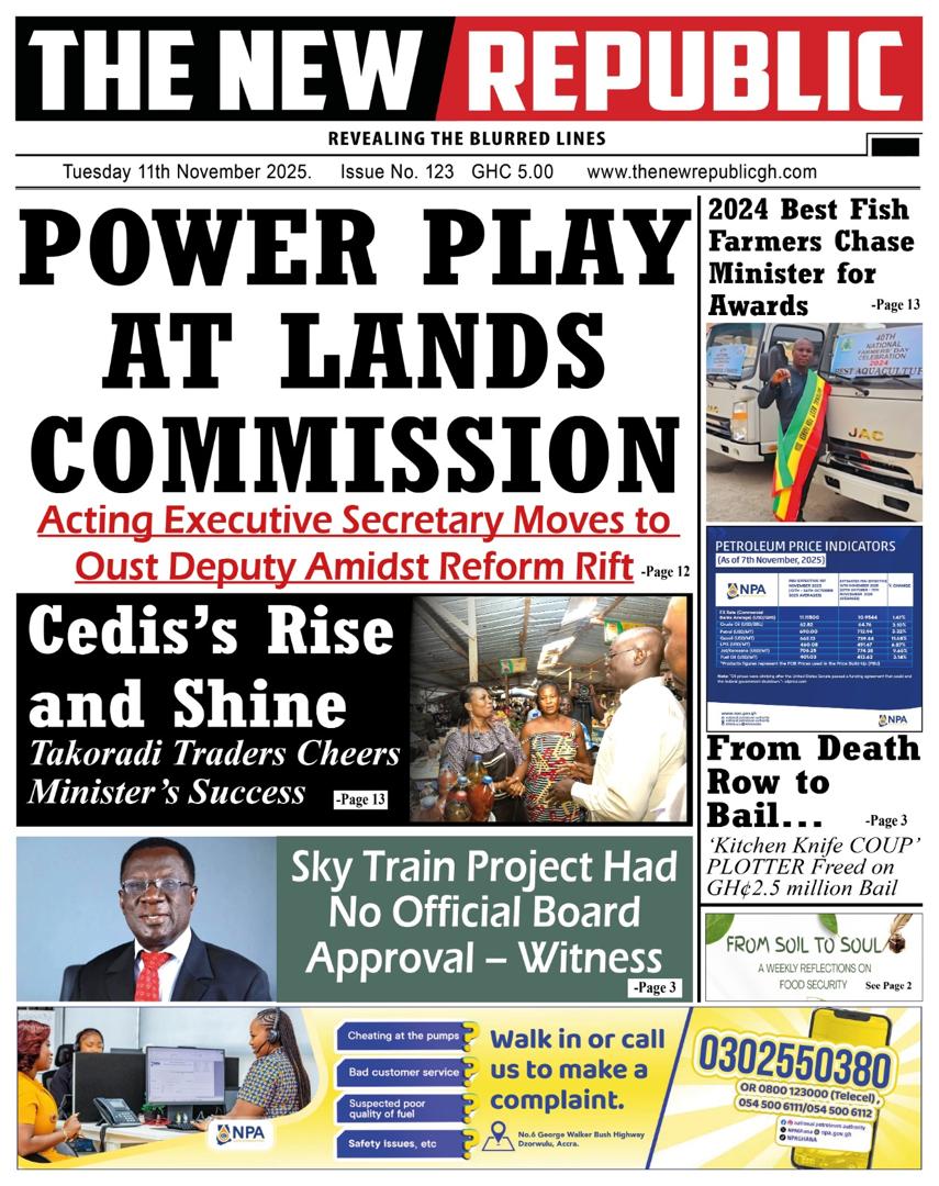NEWS Tuesday, November 11, 2025 Newspapers Headlines By Tolon Radio November 11, 2025 Share November 11, 2025 Newspapers Headlines SHARE November 11, 2025 Newspapers Headlines By: Hamza Lansah Lolly You Might Also Like Monday November 10 2025 Newspaper Headlines New passport application fee reduced to GHS350 — Effective November 13 Govt, Labour Unions reach agreement: 9% salary increment President Mahama to launch “Nkoko Nkitinkiti” program in Kumasi August 6 Helicopter tragedy report to be presented to National Security Council tomorrow Share This Article Facebook Twitter Email Print Follow USFind US on Social Medias FacebookLikeTwitterFollowInstagramFollowYoutubeSubscribe Popular News NEWSPOLITICS Pick the calls, give good feedback and humble yourselves towards party faithfuls – Superior urged aides to Bawumia Tolon Radio August 30, 2025 NPP Savannah Region congratulates newly elected executives of Gonjaland Youth Association Dampare sets up special investigative team to probe 2020-2024 election-related deaths Yendi: John Mahama celebrates 25th years anniversary of Our Lady of Lourdes Cathedral August 6 Helicopter tragedy report to be presented to National Security Council tomorrow TRENDING Tuesday, November 11, 2025 Newspapers Headlines November 11, 2025 Monday November 10 2025 Newspaper Headlines November 10, 2025 New passport application fee reduced to GHS350 — Effective November 13 November 9, 2025 Govt, Labour Unions reach agreement: 9% salary increment November 9, 2025 President Mahama to launch “Nkoko Nkitinkiti” program in Kumasi November 9, 2025