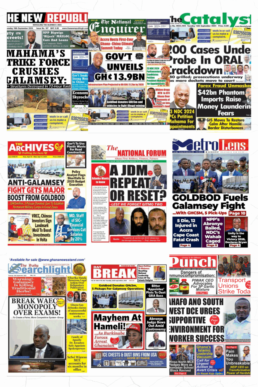 Tolon Radio > Blog > NEWS > Tuesday, September 16, 2025 Newspaper Headlines