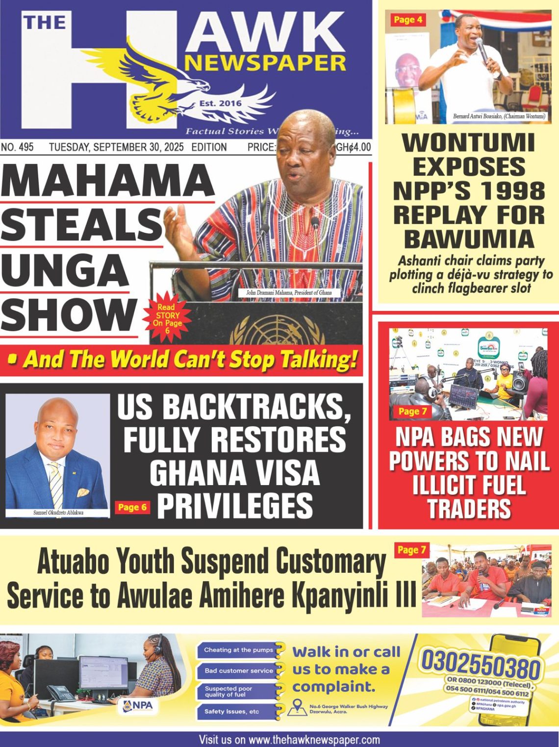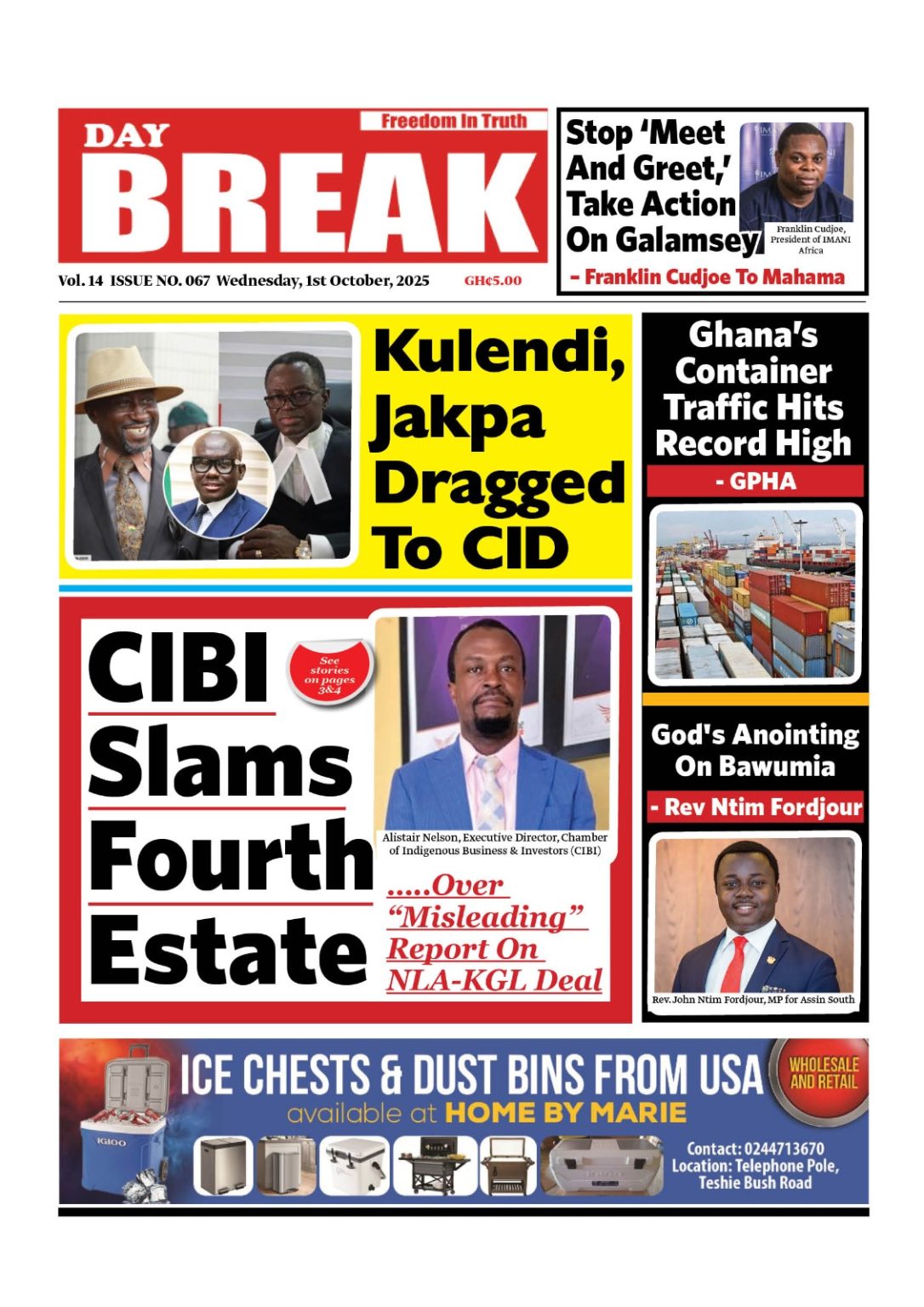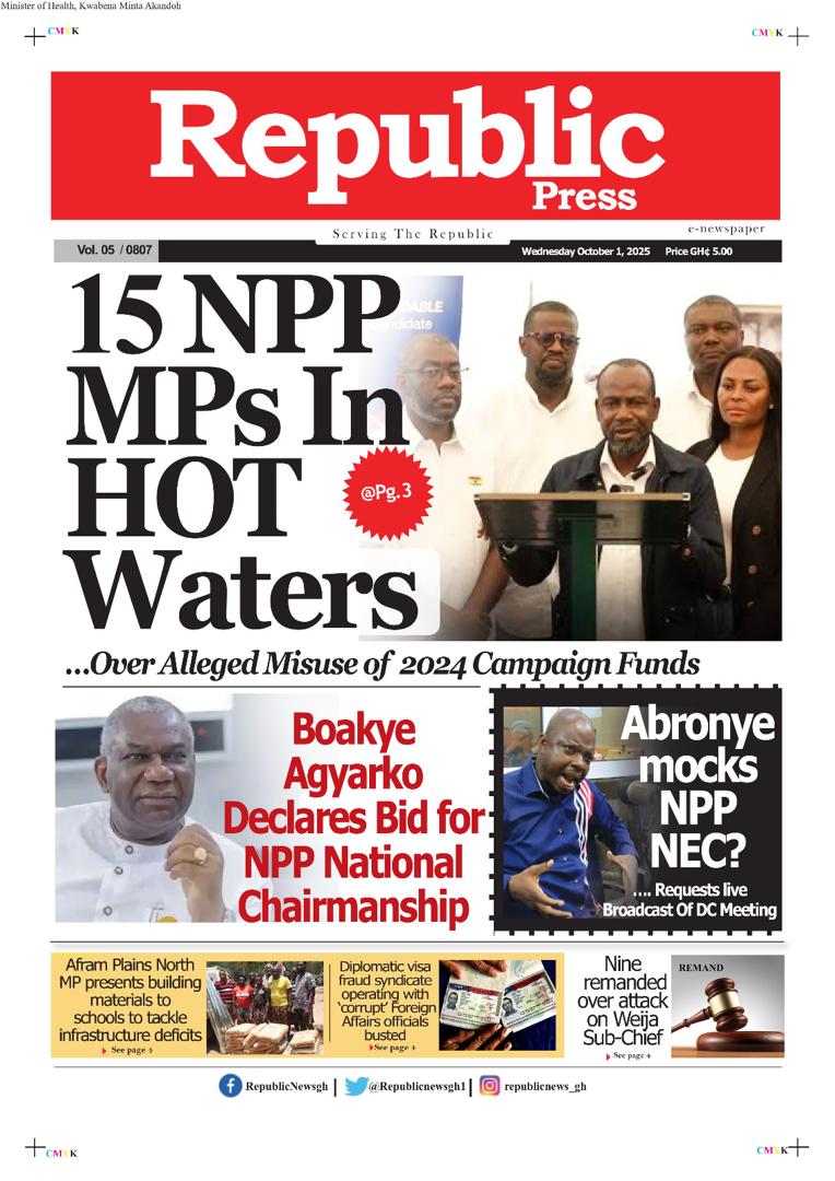 NEWS Wednesday,October 1, 2025 Newspaper Headlines By Tolon Radio October 1, 2025 Share Tuesday, September 30, 2025 Newspaper Headlines SHARE By: Hamza Lansah Lolly Wednesday,October 1, 2025 Newspaper Headlines You Might Also Like Newspaper Headlines – Tuesday, 30th September, 2025 Newspaper Headlines, Monday, 29th September, 2025 Dr Mohammed Amin Adam criticises Mahama’s leadership despite UNGA powerful address Full text: Mahama’s address at the 80th United Nations General Assembly meeting Thursday September 25 2025 Newspaper Headlines Share This Article Facebook Twitter Email Print Follow USFind US on Social Medias FacebookLikeTwitterFollowInstagramFollowYoutubeSubscribe Popular News NEWS Northern Regional Peace Council seeks collaboration with Minister to strengthen peace efforts Tolon Radio February 21, 2025 Ghana earns over $1.1 Billion from Gold Export in one Month under New Goldbod initiative Erik ten Hag sacked by Manchester United 447,698 students gain automatic admission as 2024 school placement results are released Salam Mustapha labels John Mahama as a reckless speaker, hails Dr. Bawumia as a unifier TRENDING Wednesday,October 1, 2025 Newspaper Headlines October 1, 2025 Newspaper Headlines – Tuesday, 30th September, 2025 September 30, 2025 Newspaper Headlines, Monday, 29th September, 2025 September 29, 2025 At least 39 dead in crush at political rally in India September 28, 2025 Dr Mohammed Amin Adam criticises Mahama’s leadership despite UNGA powerful address September 25, 2025